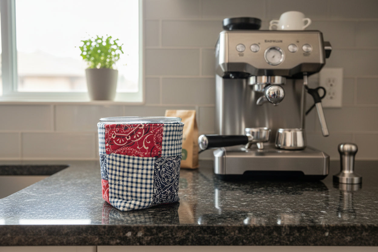 Adding a personal touch to your daily beverage routine Upgrade your sipping experience with our handmade quilted drink cozies—because every drink deserves to be enjoyed in style. ** jar not included